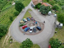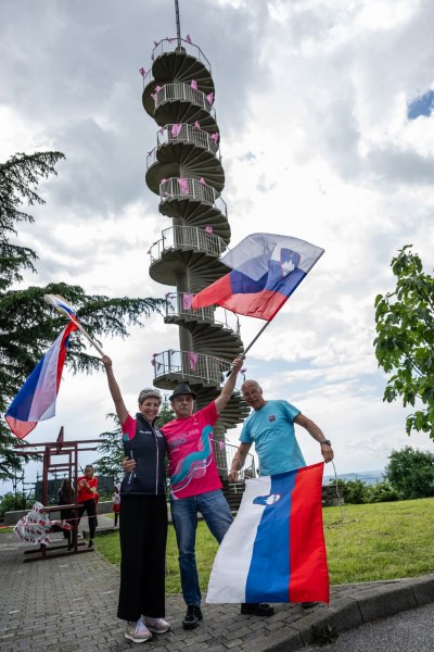 V soboto 24. maja smo se že v jutranjih urah z avtomobili in motornim kolesom opremljeni z zastavami, popeljali po delu prog v Novi Gorici in Goriških Brdih, kjer je tudi letos, kot leta 2021 potekala proga Gira. Ob progi smo srečevali nešteto navdušencev kolesarstva pa tudi ogromno kolesarjev, ki so na primorsko prikolesarili ali se pripeljali iz različnih krajev Slovenje pa tudi iz tujine. Bilo je vrhunsko. Opremljeni z baklami roza barve smo se povzpeli na vrh 23 m visokega razglednega stolpa s 144 stopnicami, ki je bil zgrajen leta 1961 v Gonjačah v goriških Brdih in tako z navijanjem in čudovito barvno kuliso popestrili samo dogajanje. Z vozili smo se nato odpravili proti trgu Evrope ob železniški postaji v Novi Gorici, ki je v letošnjem letu z Gorico postala Evropska prestolnica kulture, kjer je bil tudi cilj etape.